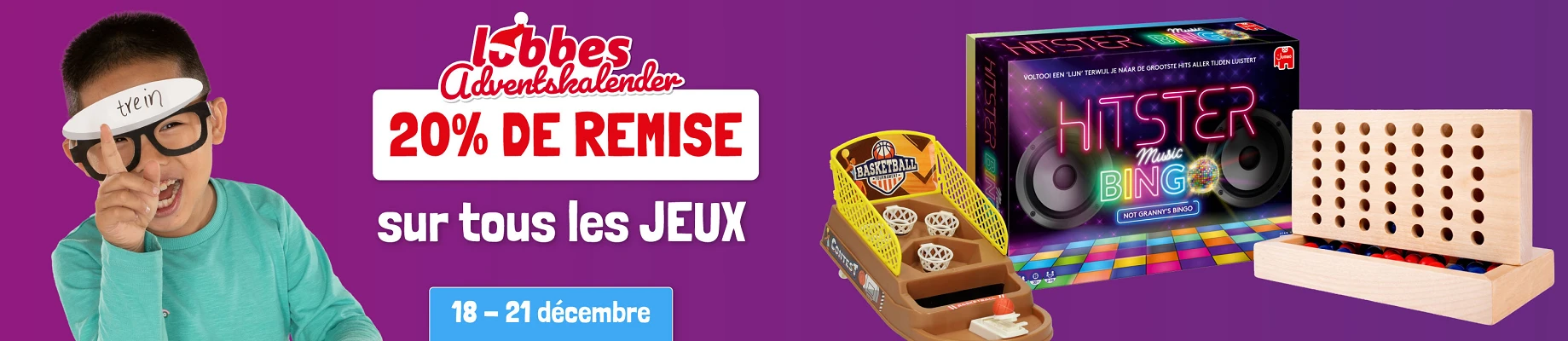 Lobbes est le magasin qui propose les meilleurs jouets depuis 1989. En se concentrant sur notre passion pour jouer, s'amuser et se développer, Lobbes est devenu au fil des ans l'un des plus grand magasin de jouets en ligne. Depuis plus de 30 ans, nous sommes spécialisés dans les jouets en bois, ce que vous découvrirez dans notre vaste collection de jouets en bois. Mais chez Lobbes, vous pouvez aussi commander bien d'autres jouets, des jouets d'extérieur jusqu'aux jouets créatifs, des LEGO jusqu'aux Playmobil, des petits cadeaux à distribuer jusqu'aux jouets pour bébés.