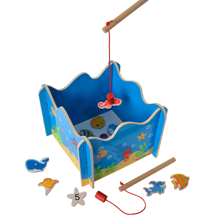 Lancez votre canne à pêche et attrapez tout ce qui nage dans ces jolis jeux de pêche en bois ! Les poissons colorés d'un jeu de pêche en bois offrent des heures de plaisir aux petits pêcheurs. Le jeu stimule les capacités d'observation et la coordination œil-main. Grâce à l'aimant sur les poissons, vous pouvez les pêcher hors de la mer.